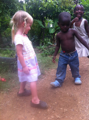 Halfway through, Lily yells, "MOM! Sofie's speaking Creole!" I came over to see what she was talking about, because she uses lots of Creole words with Noel and Gertha, but I've never heard her speaking phrases. And she WAS.